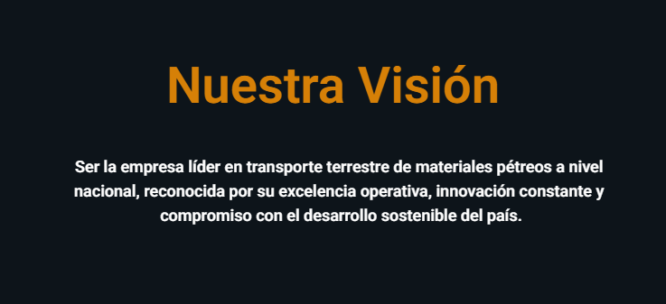 Brindar soluciones integrales de transporte especializado que respondan a las necesidades del sector construcción, minería y logística en Colombia, garantizando eficiencia, seguridad y cumplimiento mediante una flota robusta y personal altamente calificado.